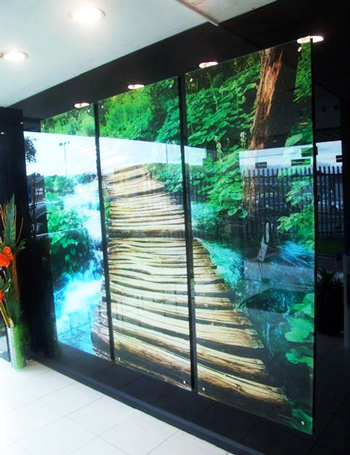 ![]() Kundenphoto: Wir können Ihr Wunschmotiv auch auf verschiedenen Materialien drucken. Obiges Naturmotiv wurde für das Eingangsfoyer des Auftraggebers als Dreiteiler hinter Glas gedruckt. weitere moderne Glasbilder betrachten |